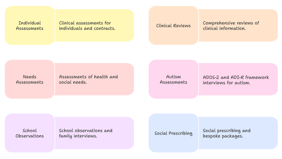 We provide expert, evidence-based assessments, reviews, and supervision services for professionals and organisations across health, education, and the independent sector.